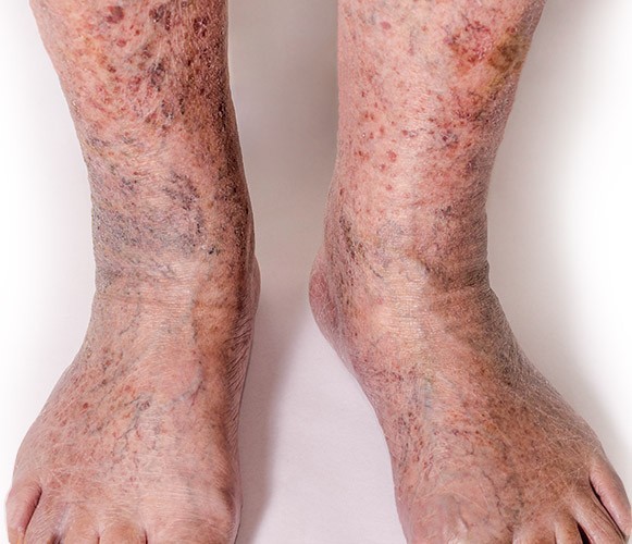발목이나 다리 부위가 짙은 갈색으로 피부 착색이 나타나기도 한다.